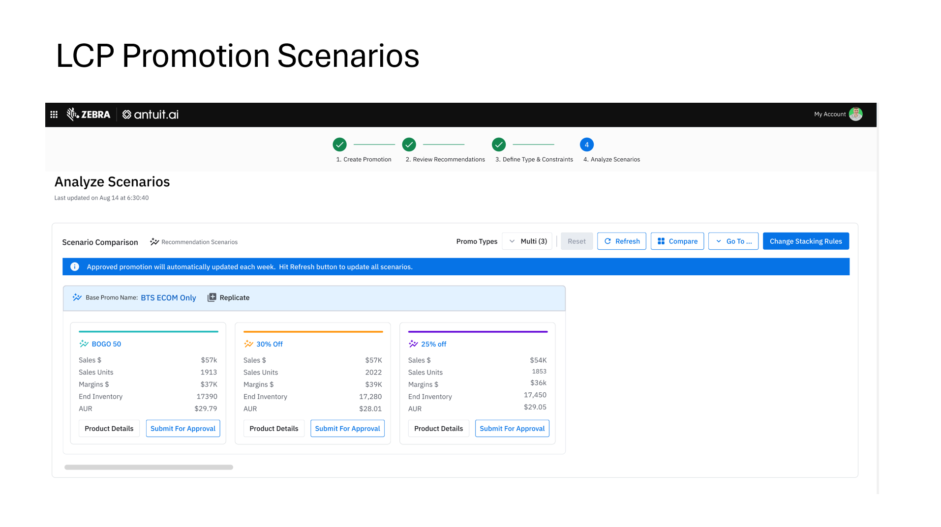 Zebra’s recognition as a Major Player underscores its ability to solve these challenges. Our Workcloud Lifecycle Pricing solution includes robust scenario planning tools, allowing retailers to evaluate potential outcomes before committing to a strategy. By simulating markdowns and pricing adjustments, businesses can identify the most effective path forward with confidence.