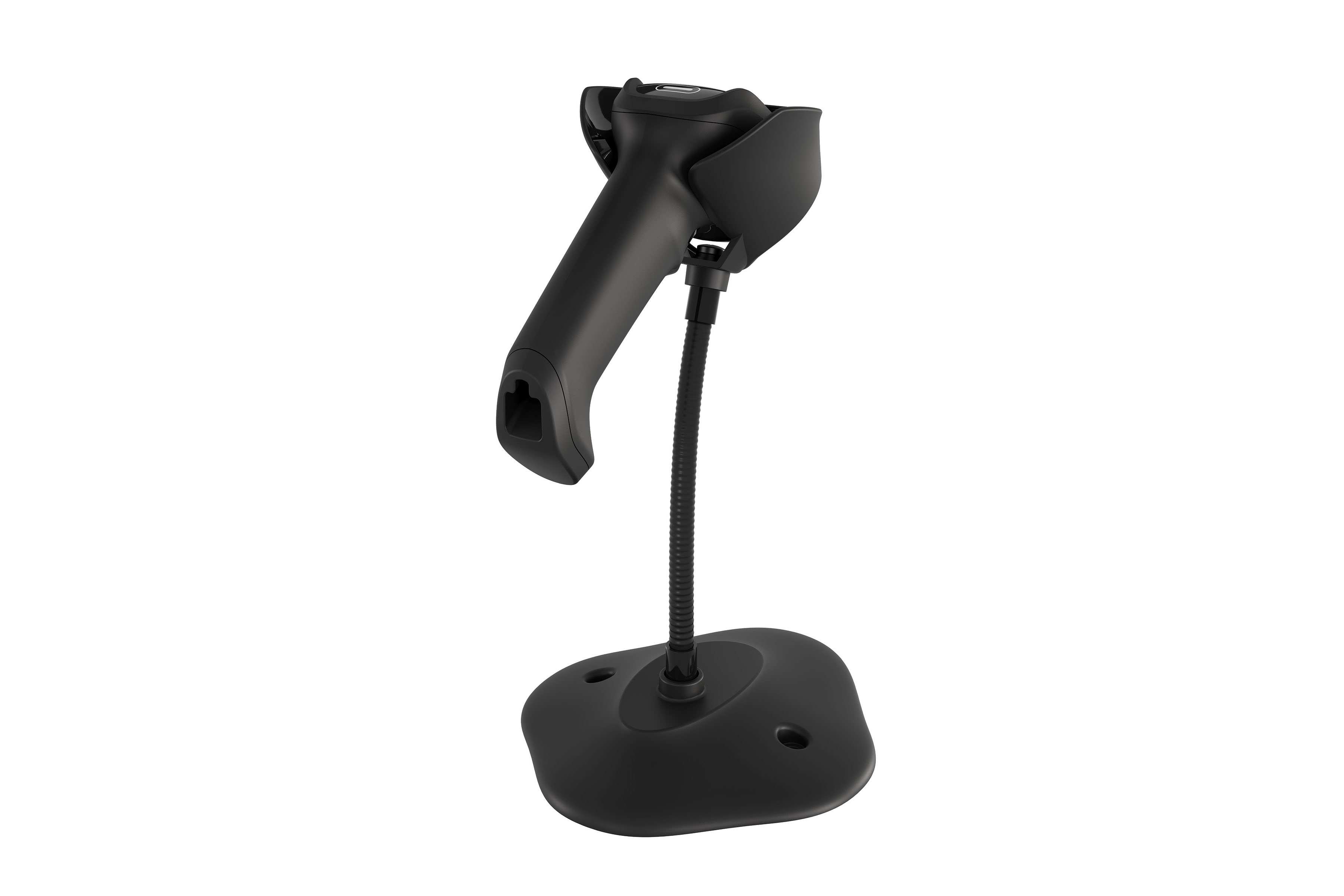 The gooseneck stand increases application flexibility by providing a hands-free option for corded scanners.