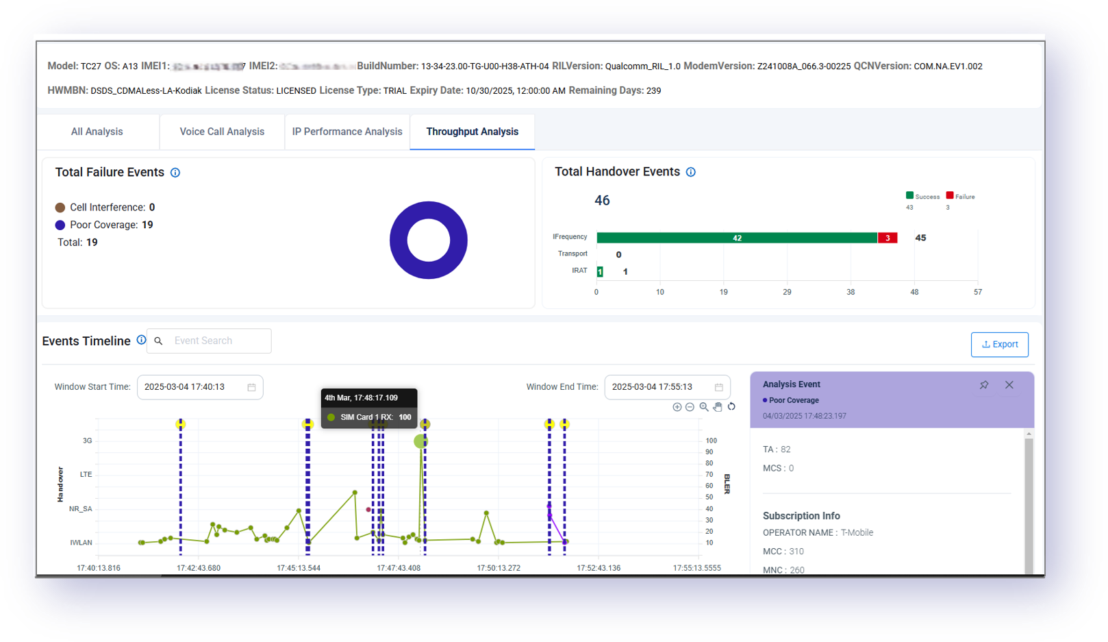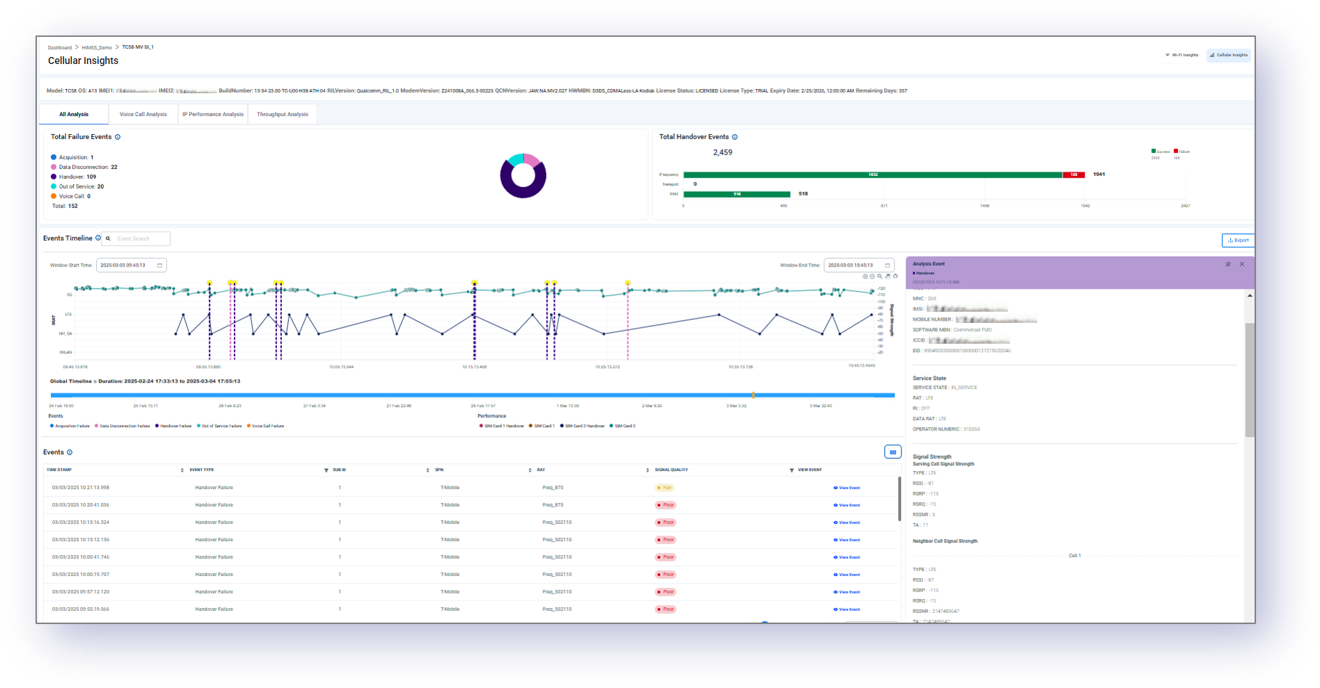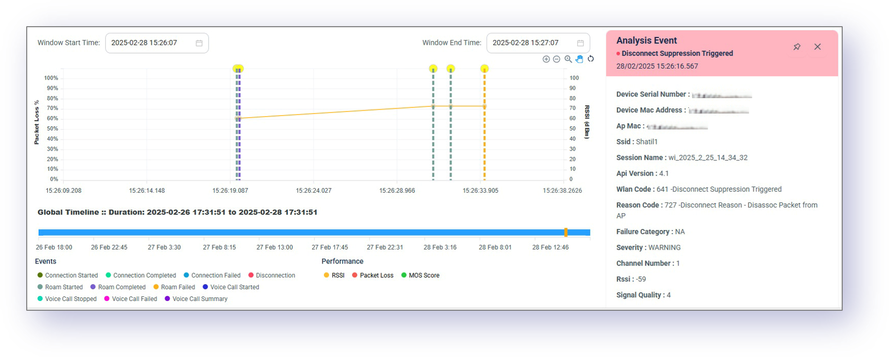 Vea la secuencia completa de eventos de itinerancia y traspaso y determine el motivo de la falla.