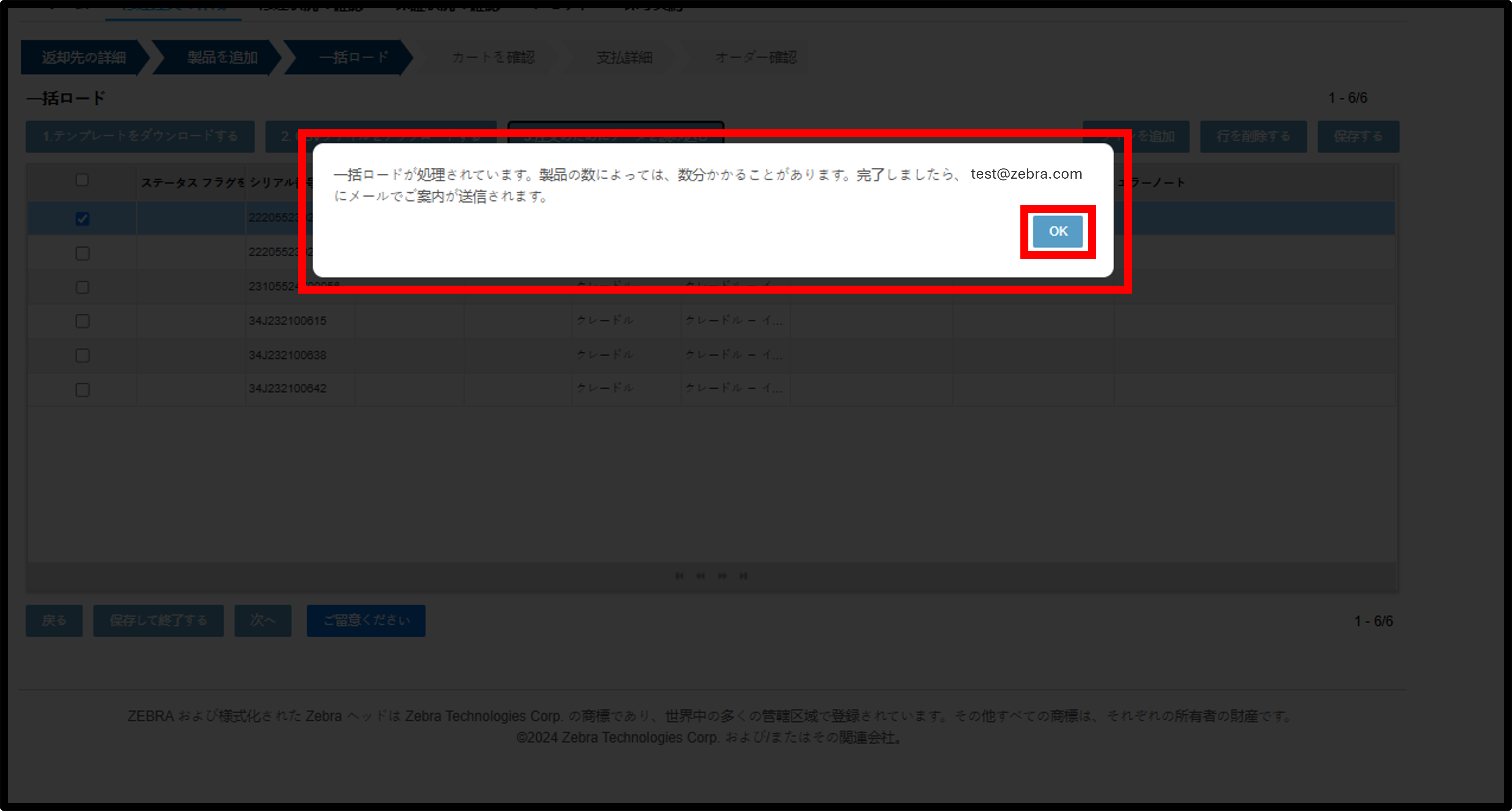 「修理注文」タブに戻る。一括読み込みが完了すると、Eメールで通知されます。