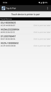 ペアリング済みデバイスリストから Zebra プリンタをタップし、テストページを印刷します。