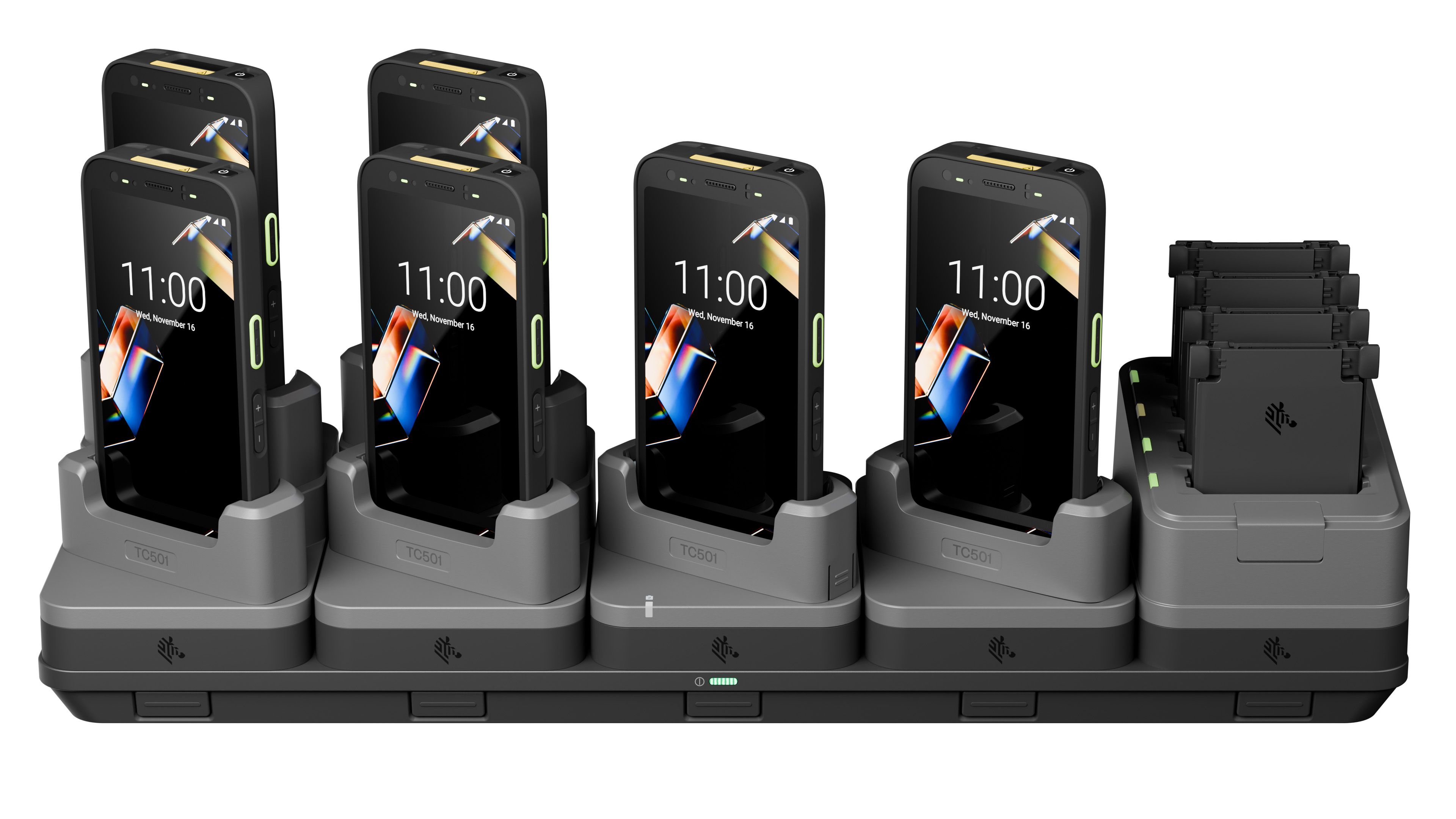 Charge tablets efficiently with the standalone cradle or 5D cup. The Flash ShareCradle offers fast charging, adaptive technology to extend battery life, and a modular design for reduced costs and future compatibility.