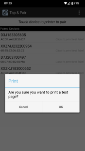 Tap OK to confirm you would like to print a test label or click Cancel.